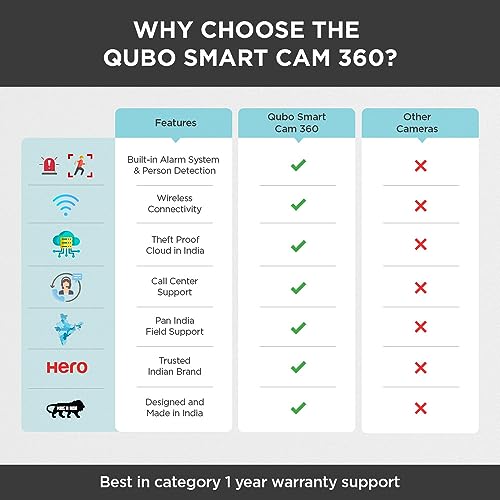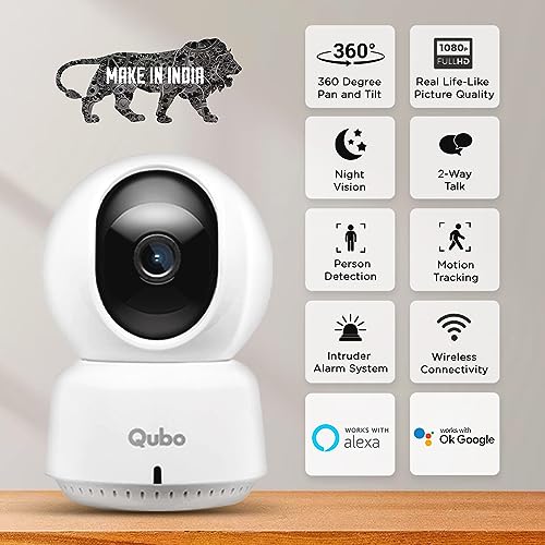 Qubo Smart 360 WiFi CCTV Security Camera for Home from Hero Group | 2MP 1080p Full HD| Mobile App | Two Way Talk | Night Vision | Cloud & SD Card Recording | Made in India | Alexa & OK Google |