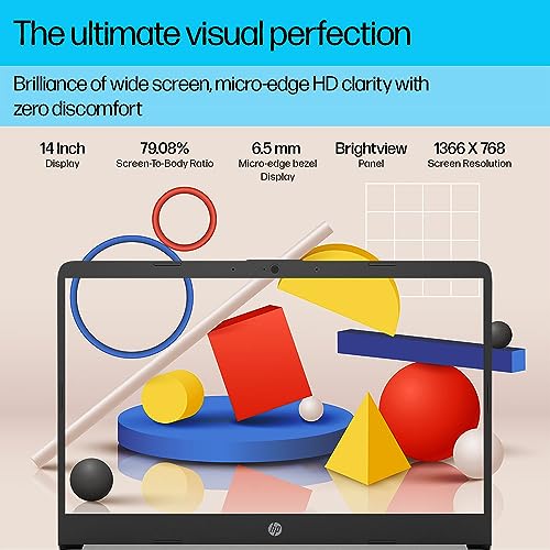 Display and Graphics: 35.6 cm (14″) diagonal, HD (1366 x 768), micro-edge, BrightView, 250 nits, 45% NTS| Graphics – Intel UHD Graphics