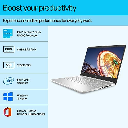 HP Laptop 14s, Intel Pentium Silver N6000, 14 inch(35.6 cm) HD (1366 x 768) Micro-Edge, 8GB DDR4, 512GB SSD, Intel UHD Graphics, Dual Speakers, HD Camera (Win 11, MSO, Alexa,1.46 Kg) dr3003TU
