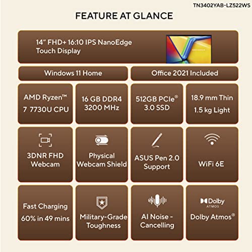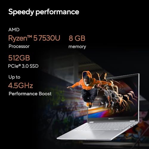 ASUS Vivobook S 14 Flip (2023), AMD Ryzen 5 7530U, 14" (35.56 cm) FHD+ Touch, Thin & Light Laptop (8GB/512GB SSD/Windows 11/Office 2021/Alexa Built-in/Backlit KB/Silver/1.50 kg), TN3402YAB-LZ522WS