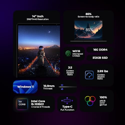 Vibrant Display and High Resolution: Boasting a 14″ screen with a screen resolution of 2160*1440 and a 3:2 screen ratio, enjoy crystal-clear visuals and an optimized display format.