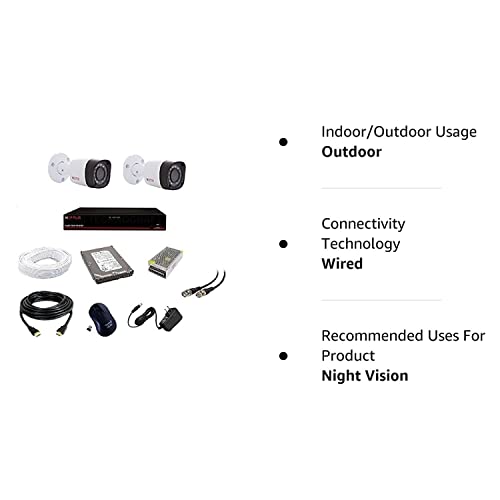 CP PLUS 2.4 MP HD CCTV Wired Cameras 4Ch. HD DVR, 2 Bullet Camera, 500GB Hard Disk, 4 CH Power Supply, 90m Wire Bundle, BNC and DC Connectors, Black, White