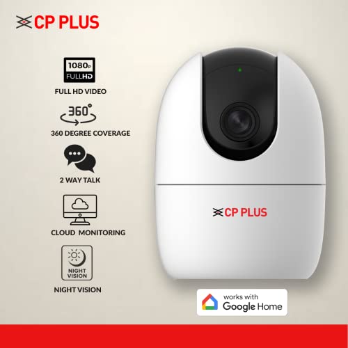 CP PLUS 2MP Full HD Wi-fi CCTV Camera | 360°View PT Camera | Human Detection & Motion Tracking | Cloud Monitoring | 2-Way Talk, Night Vision| SD Card (Up to 256 GB) | Privacy Mode – CP-21