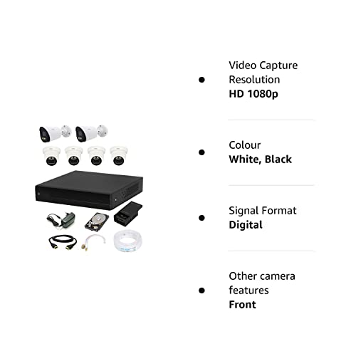 CP PLUS Wired 8 Channel HD DVR 1080p, Colorful View in Night Vision Outdoor Camera 2.4 MP 2Pcs, Indoor Camera 2.4 MP 4Pcs, 1 TB Hard Disk Full Combo Set