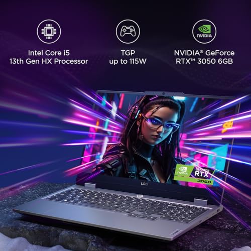 Lenovo LOQ 2024 Intel Core i5-13450HX 15.6" (39.6cm) 144Hz 300Nits FHD Gaming Laptop (16GB/512GB SSD/Win 11/NVDIA RTX 3050 6GB Graphics/100% sRGB/3 Month Game Pass/Luna Grey/2.4Kg), 83DV007JIN
